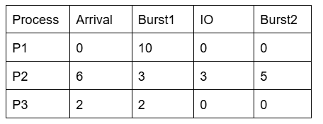 Assuming no context switch overhead the average waiting time using Roundβrobin with time slice of 3 ms (assume P1 starts executing first in the beginning) (in ms):